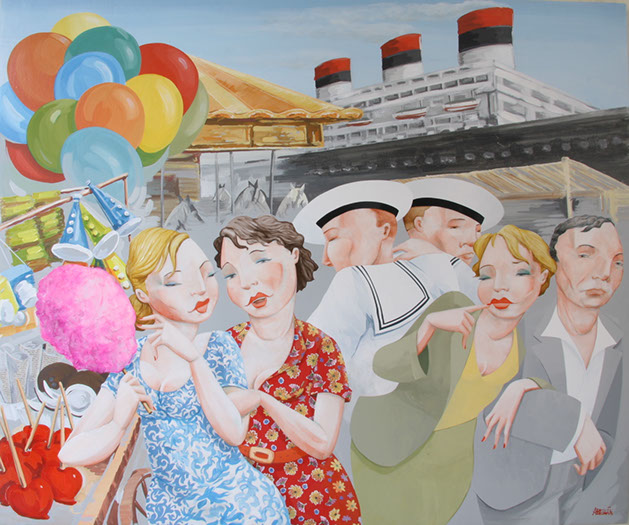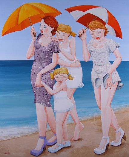 Paseo playa con paraguas - 100 x 120 cm. 2010.