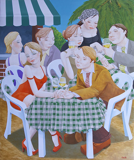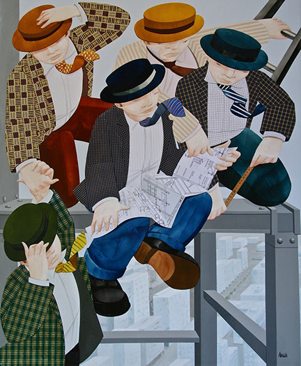 Motoristas en el cruce - 120 x 110 cm. 2008.