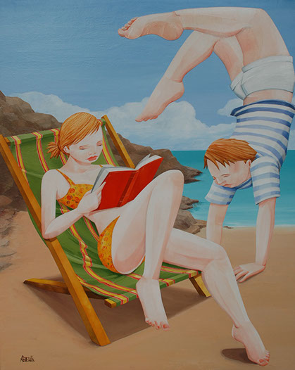 Lectura y equilibrio playa - 81 x 100 cm. 2009.